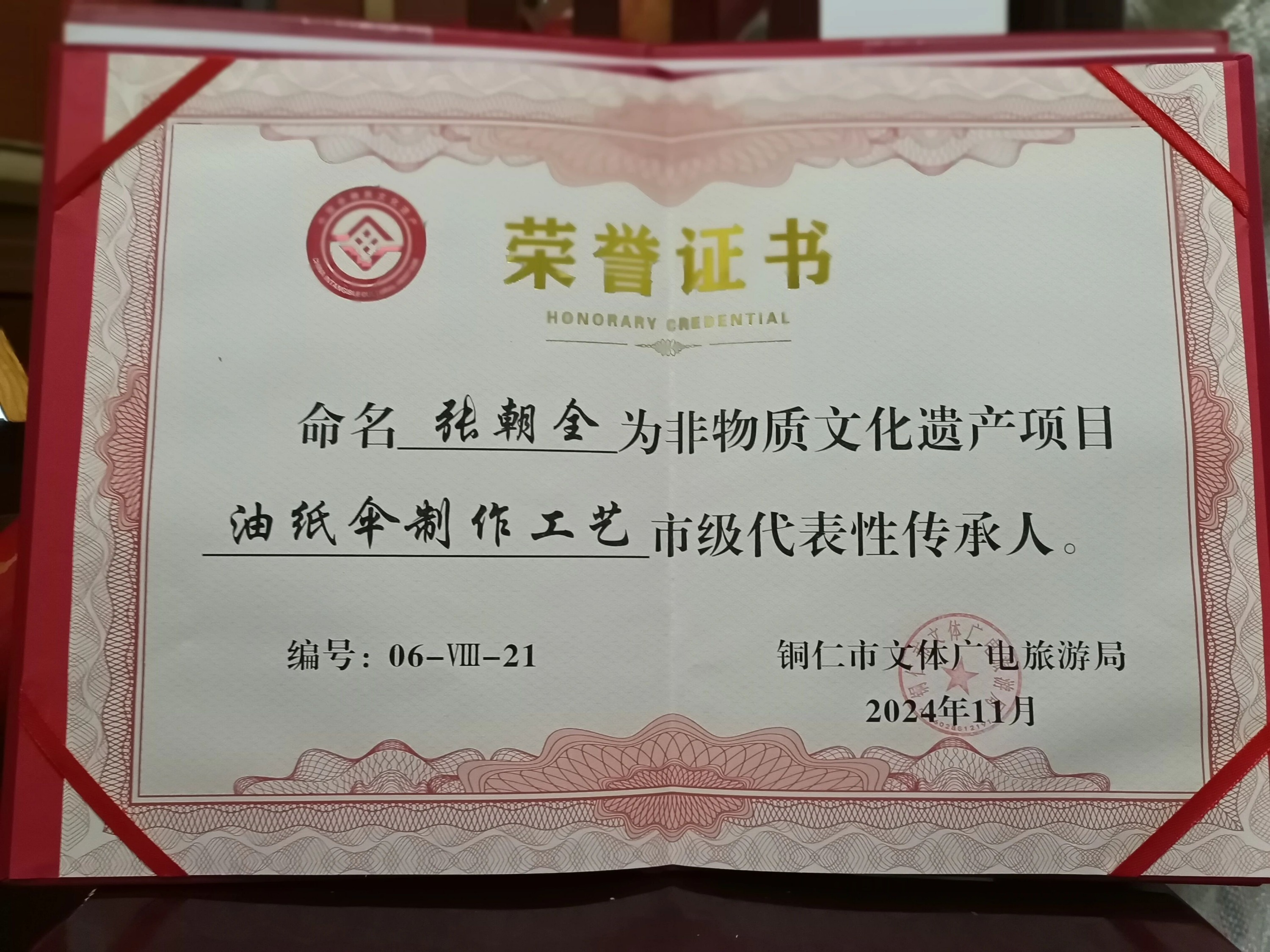 如今,他被聘为印江一中综合实践活动课程指导教师(传统技艺),教学油纸伞的制作,让更多的人能传承这门技艺。他先后获得市级非物质文化遗产项目“油纸伞制作”工艺代表性传承人和“能工巧匠”等荣誉称号。2012年,印江油纸伞还被贵州省商务厅批准为第一批“贵州老字号品牌”。