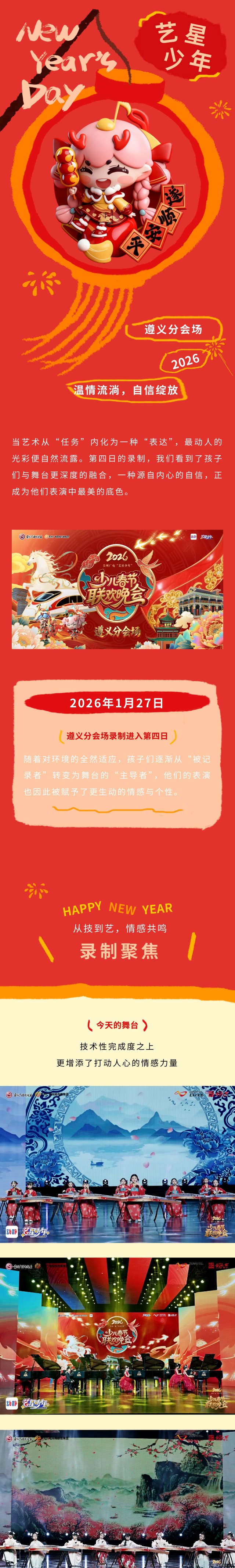 【“艺星少年”少儿春晚——遵义分会场1.27回顾】温情流淌,自信绽放!第四日录制展现深度!