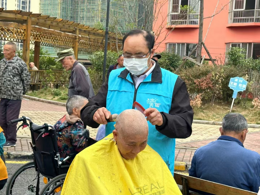 付文龙为敬老院老人剪发