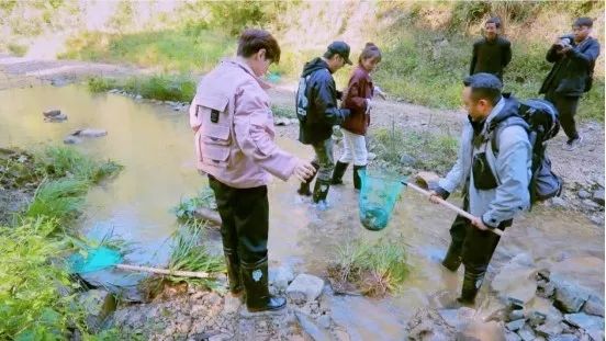资深娃娃鱼养殖户赵条丁带领野生家族来到林间溪涧,在众人帮助下,汪涵抓到了一条肥大的娃娃鱼。