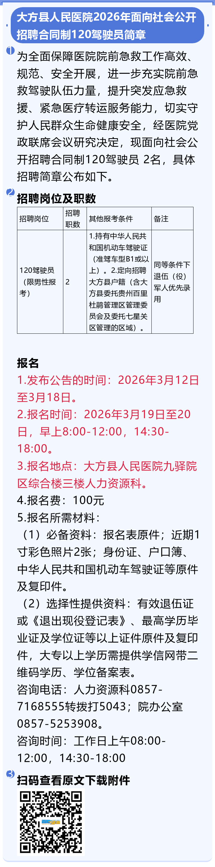【事业单位】招聘120驾驶员!报名截止时间:3月20日!