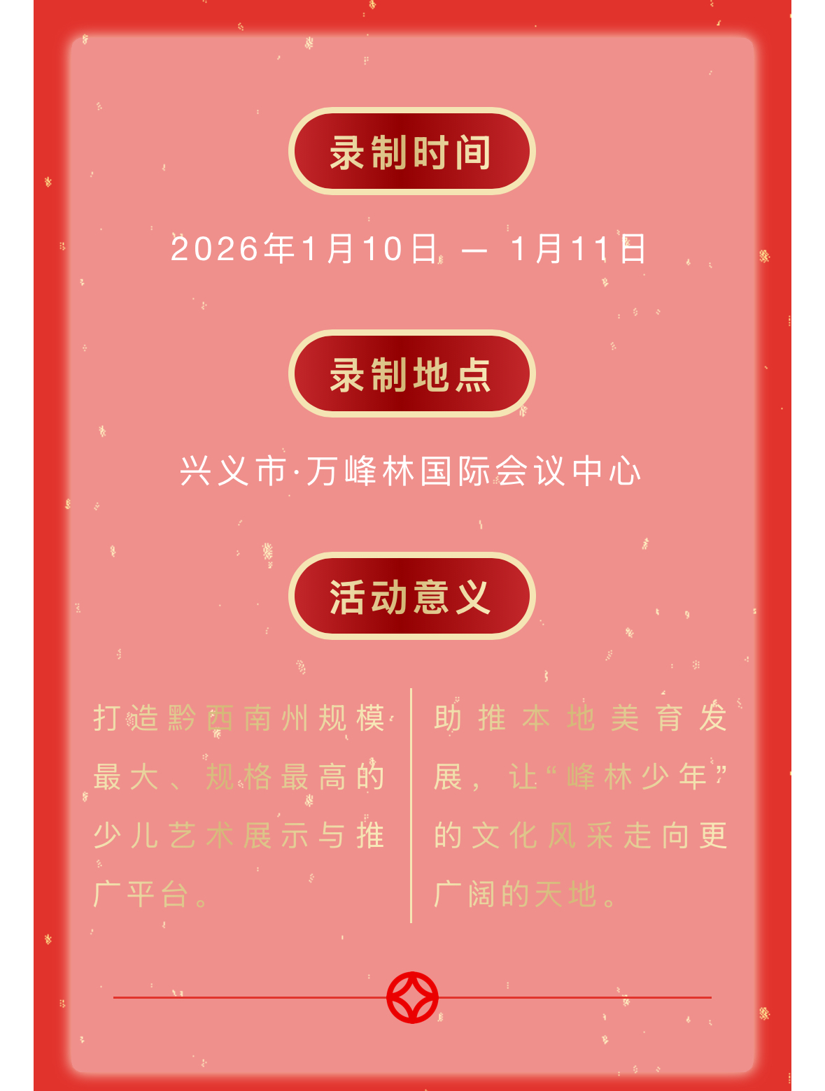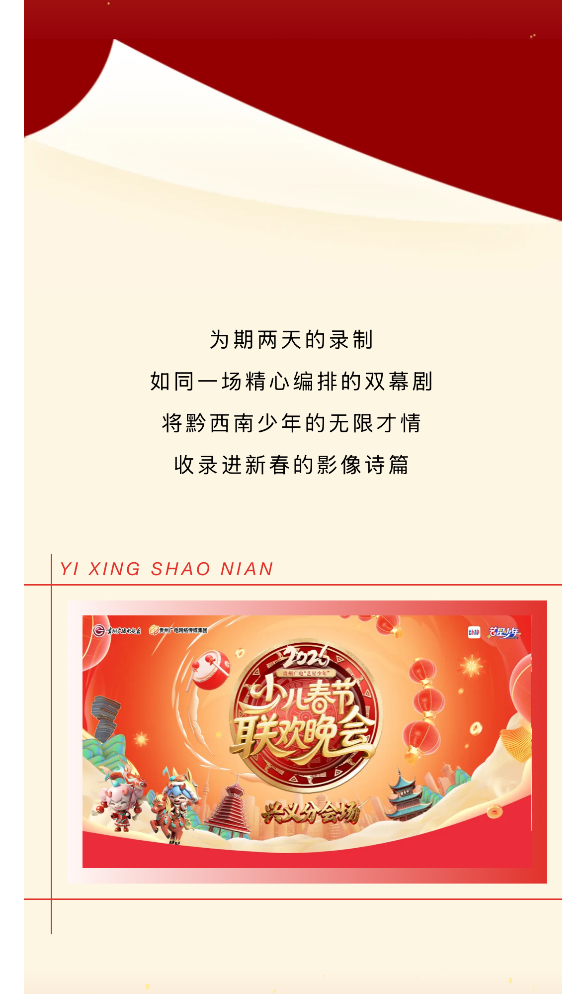 峰林少年,艺绘新春!2026少儿春晚兴义分会场1.10-1.11双日录制开启!