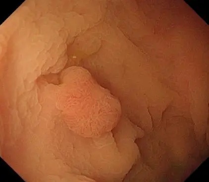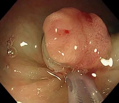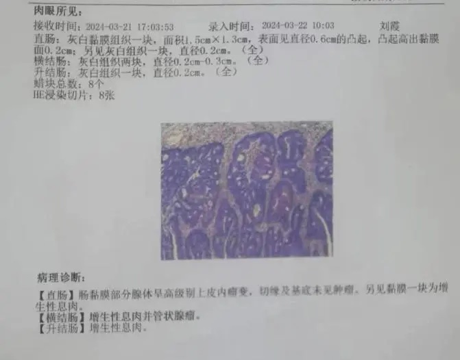 原来,是我院功能科主任、消化内科副主任刘哲为患者进行胃肠镜检查时,发现患者直肠处有一个大小1.5cm*1.0cm的息肉。凭借敏锐的观察力和扎实的专业素养,刘哲主任判断,这很可能是早癌。