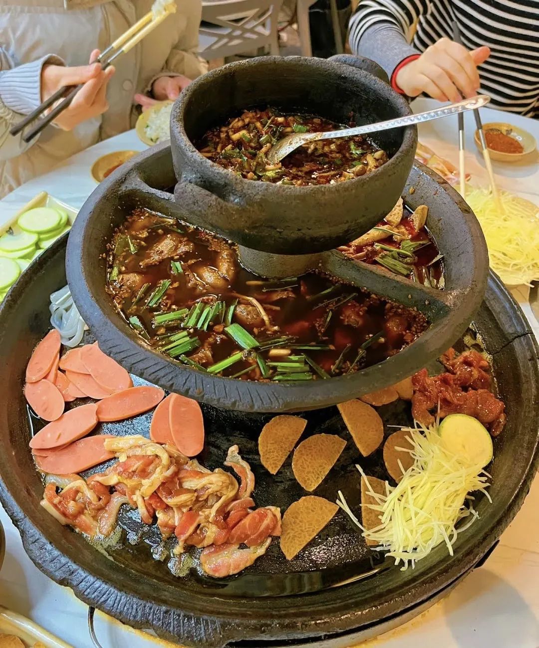 下面可以烙香肠、鸡皮、五花肉、洋芋粑、瓜片