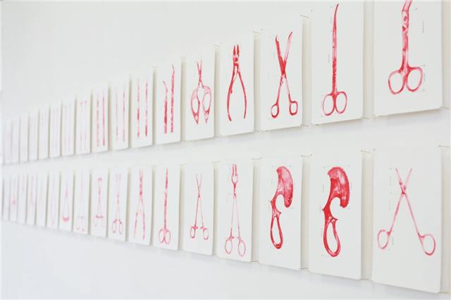 这引发了我对手术刀的关注。我将手术刀按1:1的比例绘制下来,还把比例尺像数据一样标在了作品的旁边。