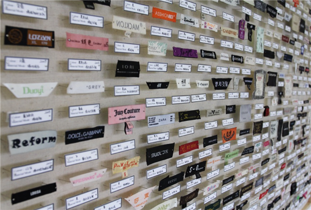 我把我母亲衣柜里,从2004到2014的十年间,所有衣服的商标收集了起来,像标本一样钉在1.2米×1.4米的框子上,把每一件衣服的购买时间、款式、型号、颜色写成了标签放在商标下面,做成了一个非常庞大的装置作品。