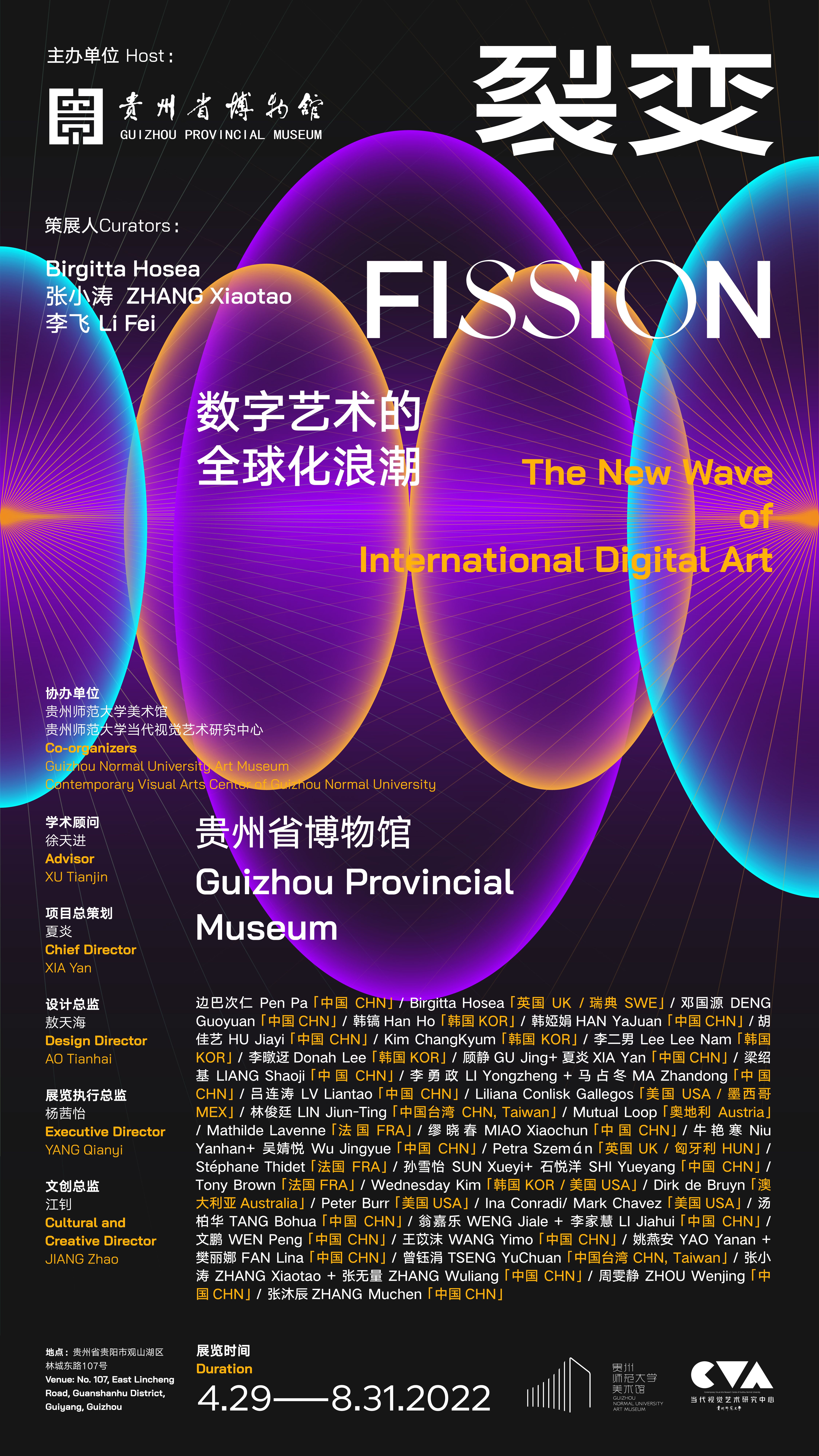 《裂变-数字艺术的全球化浪潮》展览是从全球化数字艺术的思想和方法入手,是一次具有学术性、公众性、本土化、国际化的科技艺术项目,该展是贵州首次国际数字艺术的顶级展览。其中涵盖了卡塞尔文献展、威尼斯双年展、奥地利林兹艺术节等参展艺术家的重要艺术家作品。不仅是一次全球数字艺术的峰会,更是对中国数字艺术教育、科研、生产的一次重要事件,也是一次国际化与本土化 的实践项目。