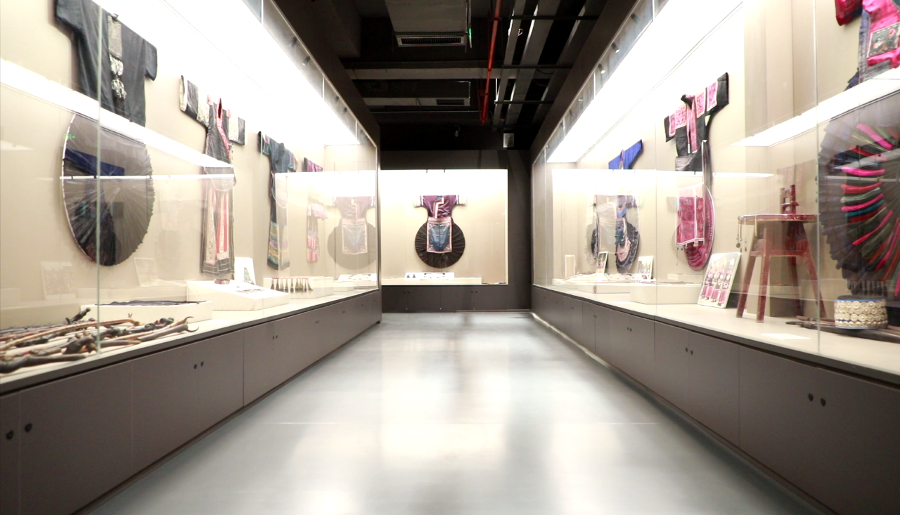 博物馆一角,展示着由刺绣、蜡染演绎而来的文创作品,“民族技艺+”的开发思路,呈现了刺绣、蜡染、银饰与首饰、用品、服饰、丝绸的融合……实现着民族技艺故事的再设计再表达。