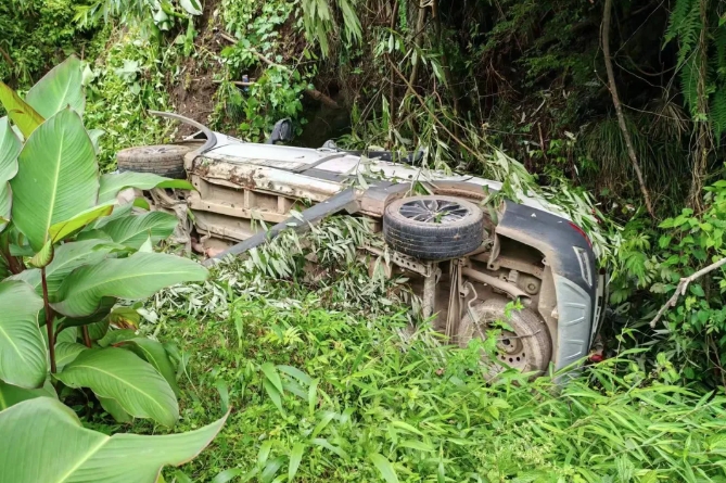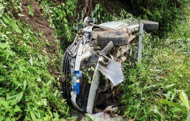 近日,在黔西南州普安县地瓜镇屯上村半坡组农村通组路段,一男子因天气闷热,发动车辆准备开窗透气,不料因操作不当面包车直接溜出路外,滚落到10余米山坡下,所幸无人员受伤。