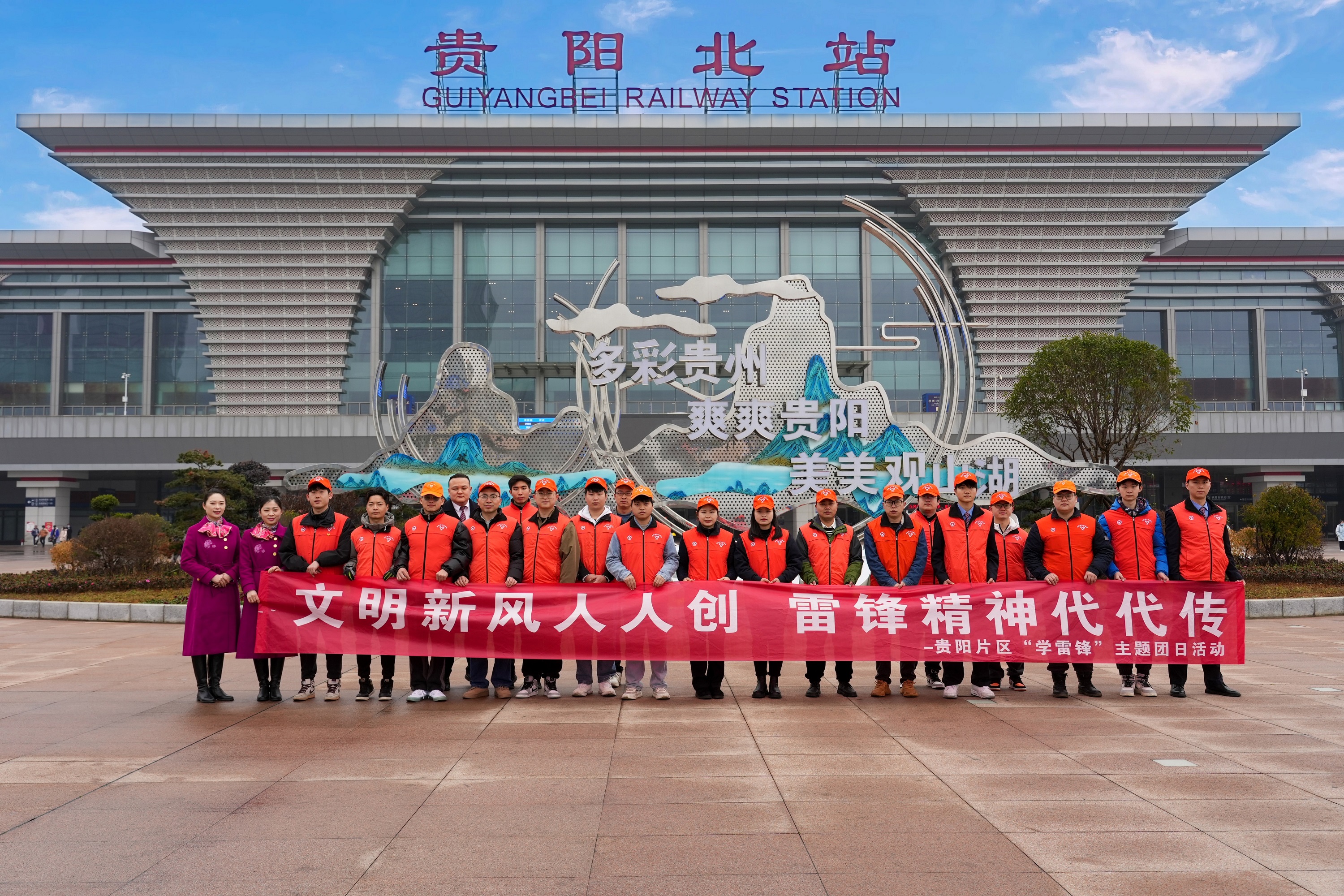 今年3月5日是第60个学雷锋纪念日,由贵阳车站、贵阳车辆段等12家铁路单位组成的25名青年志愿者服务队在贵阳北站开展“学雷锋”活动,为过往旅客提供帮助,并宣传铁路安全知识。