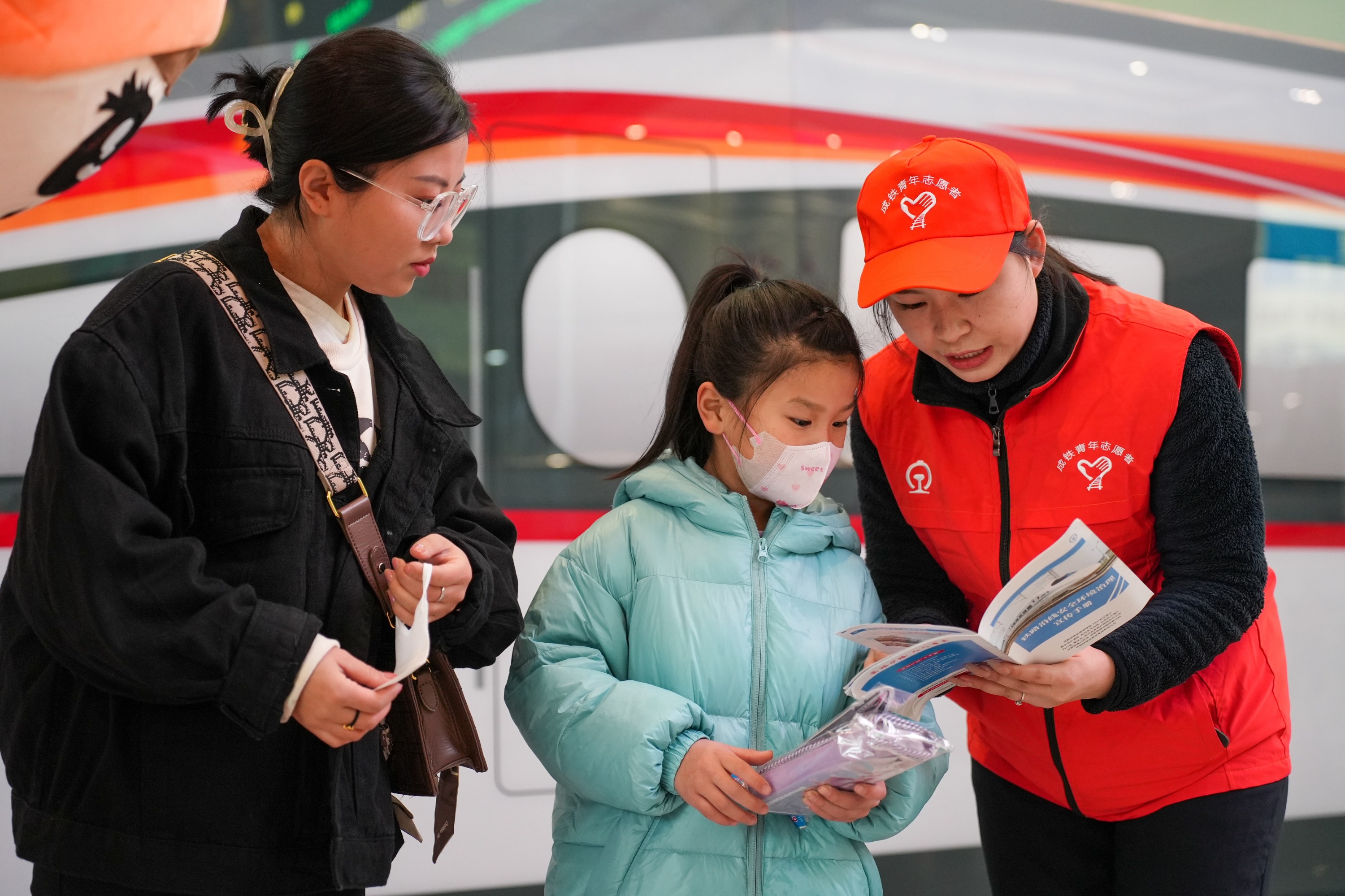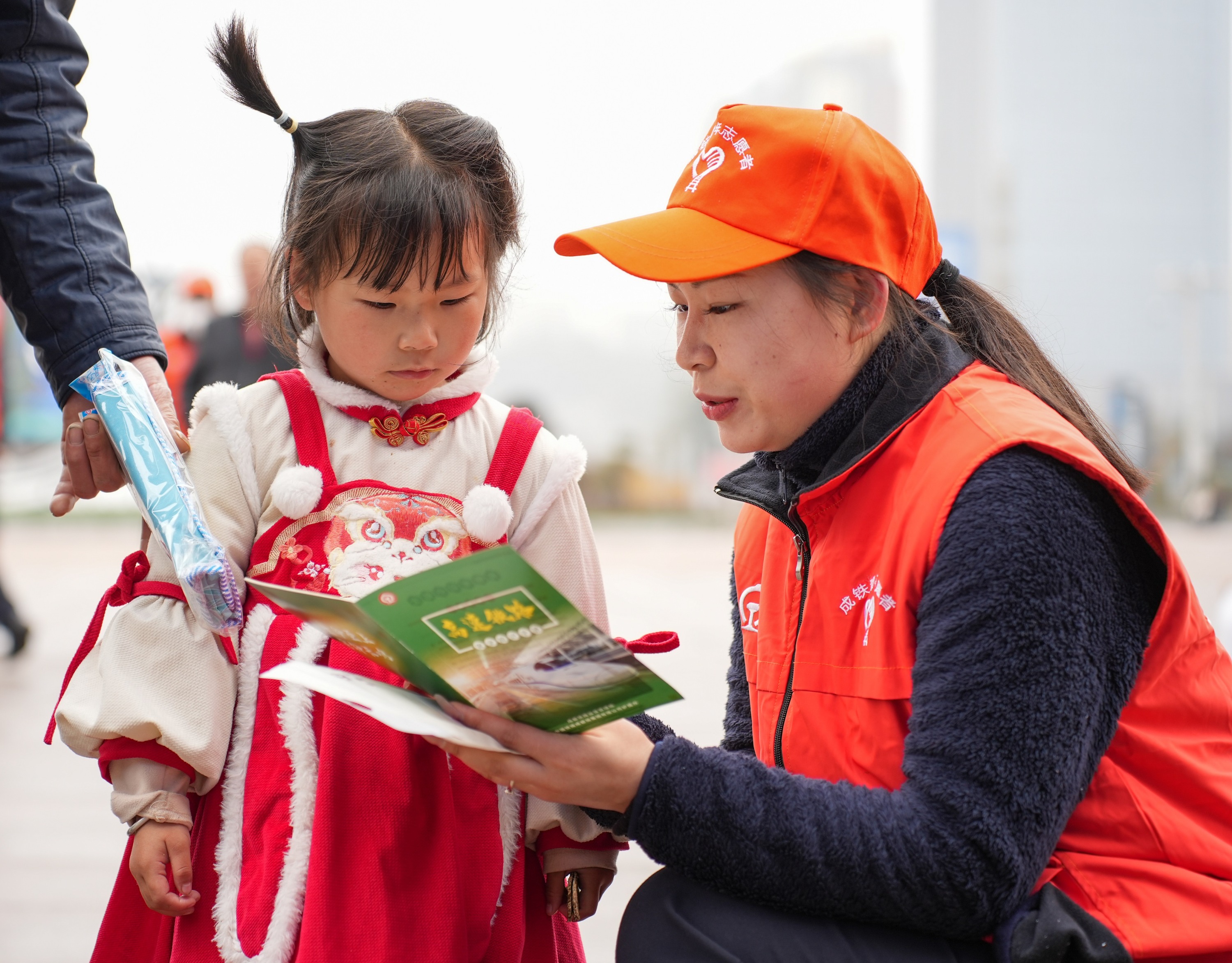 “小朋友,我们在开展‘学雷锋’活动,在这里要提醒大家在乘车过程中要注意站台安全,平时玩耍要远离火车线路,回到课堂也要分享给同学们哦。”贵阳车站青年志愿者姚红同志正在为小朋友宣传铁路安全知识,当得到家长和小朋友的点赞时,她笑着说到“雷锋精神不仅在我们身上传承,也要在小朋友的心里播下了种子。”