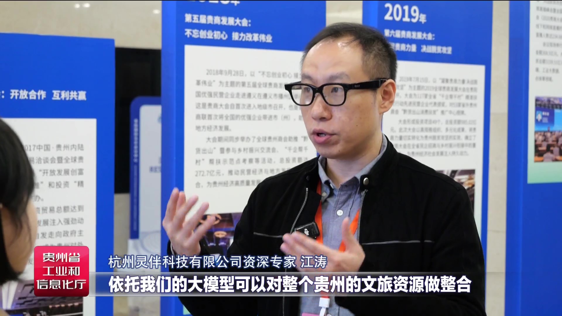 杭州灵伴科技有限公司资深专家江涛表示,他们在做Ai眼镜,通过大模型的训练对贵州文旅资源做整合,用更新颖的一种方式去传达出贵州的美。