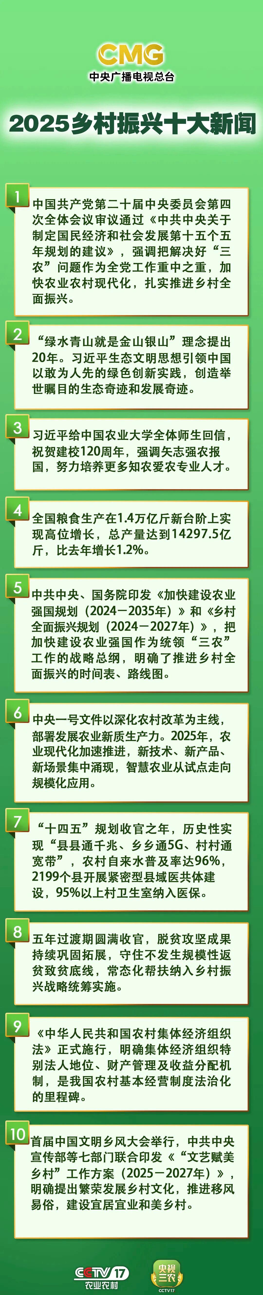 中央广播电视总台发布2025年度乡村振兴十大新闻