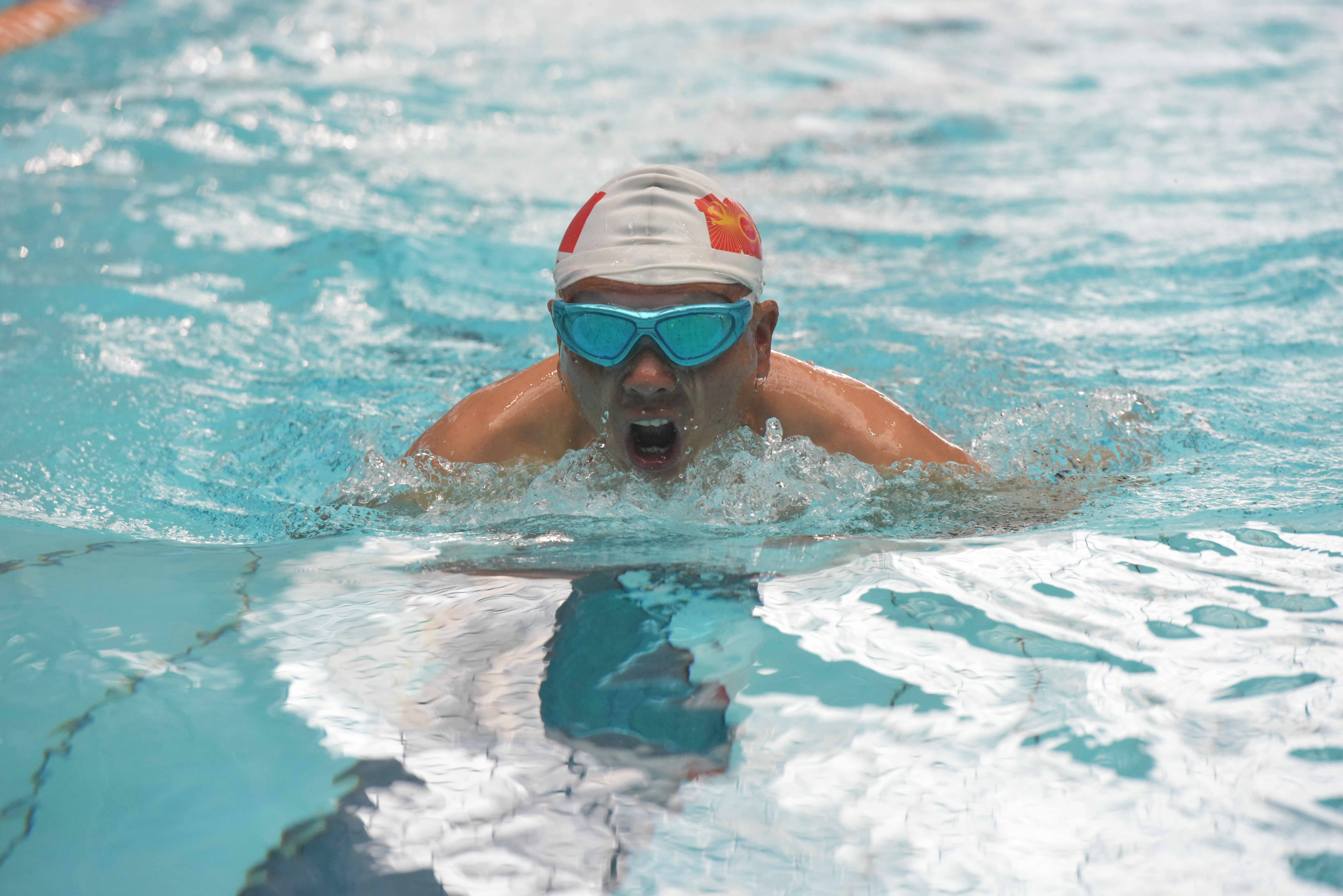 沿河土家族自治县游泳协会选手陈芳说:“我参加的是40到49岁女子组50米蛙泳比赛,选手们都很棒,跟他们一起比赛也是我的荣幸,能够汲取他们的优点,促进我的进步。”