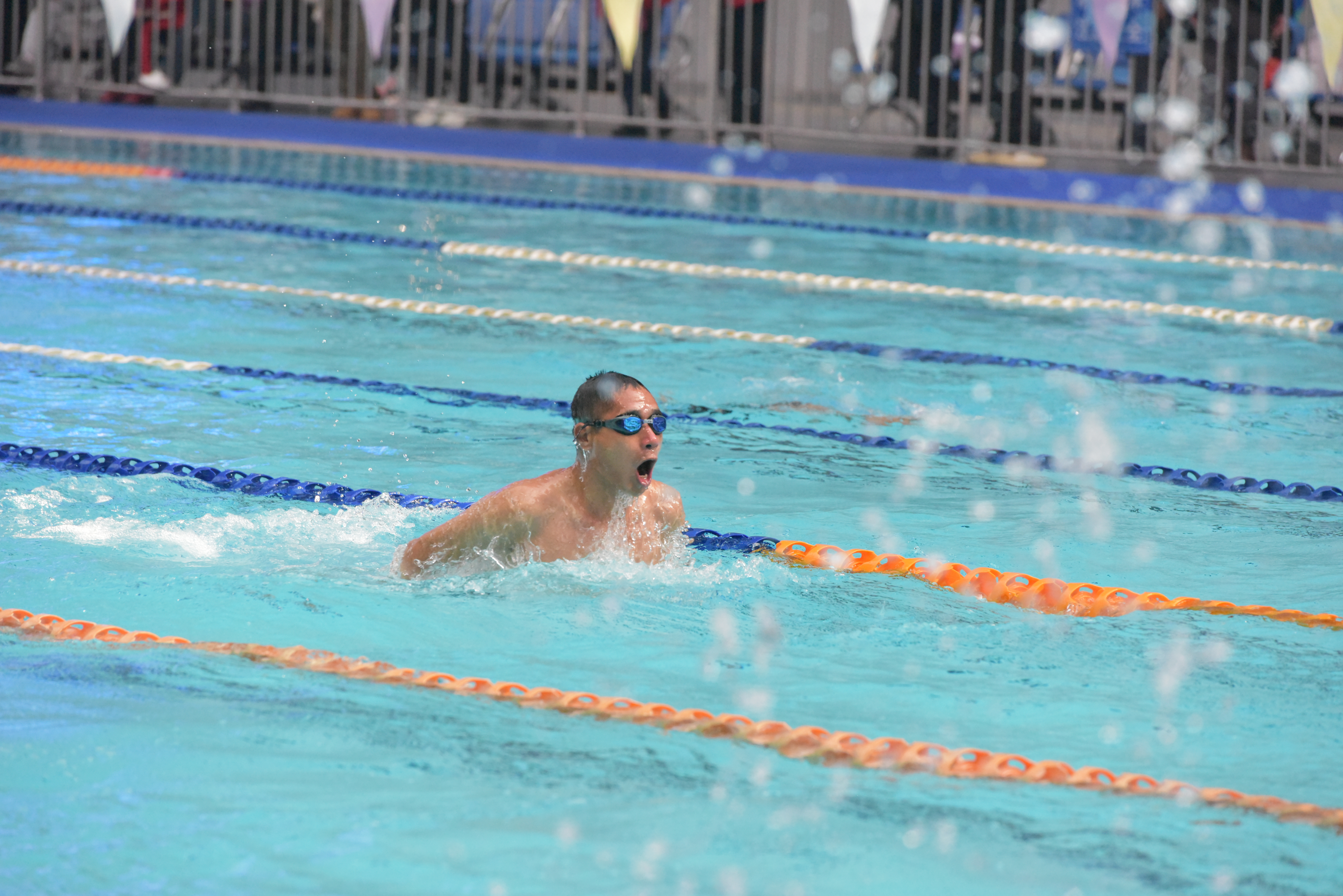比赛现场,随着发令枪响,选手们纵身入水,五十米泳道化作沸腾的战场,划水声、换气声、拍水声交织成激昂乐章。运动健儿们在速度角逐中展现风采,观众席上加油声、掌声不断。