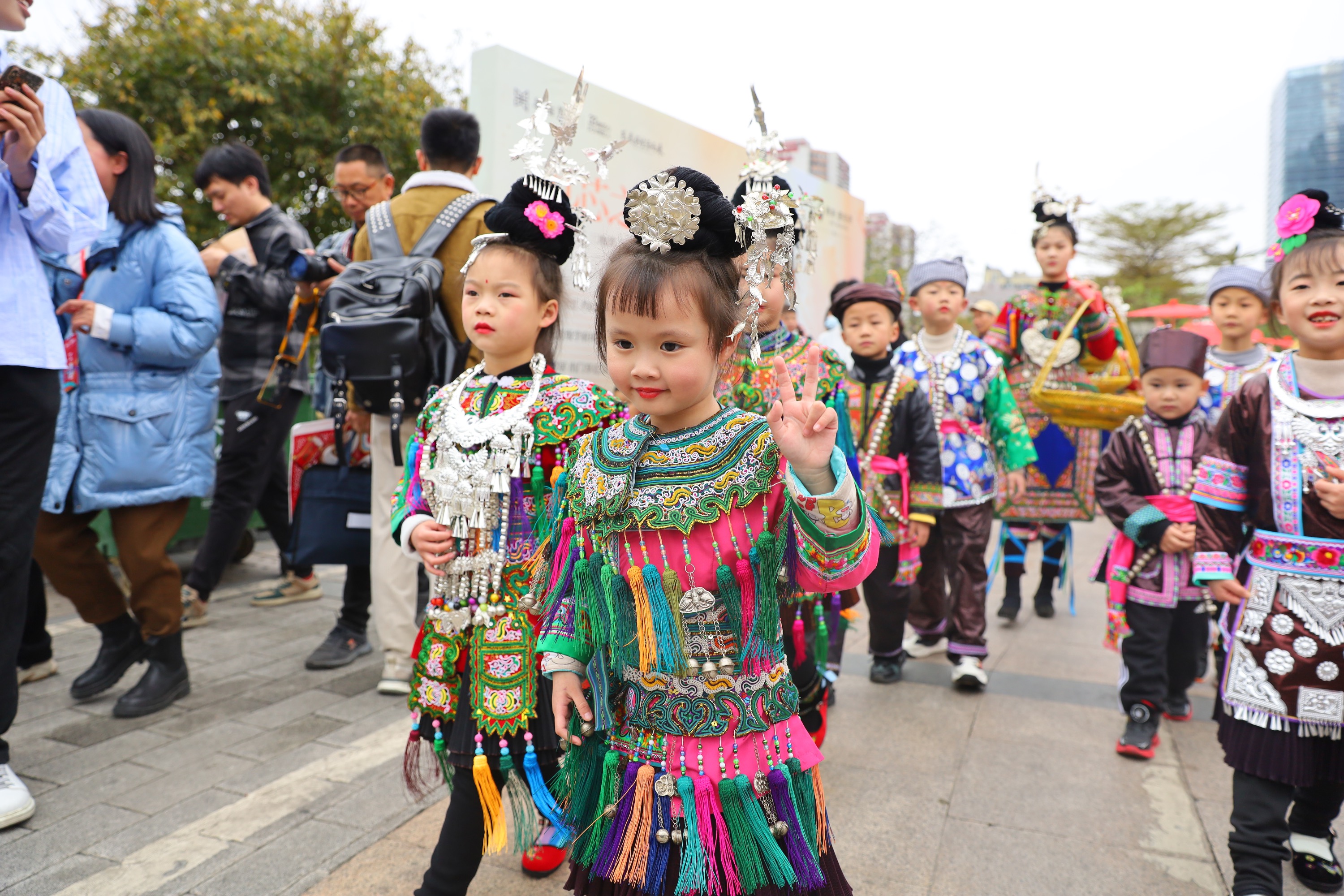 活动在禅城醒狮队的表演中拉开序幕,为更好地加强佛黔两地文化交流,在醒狮队的带领下,身着盛装的侗族阿哥阿妹们,挑着特色美食、弹着侗族琵琶,在禅城区文华迎春中心进行巡游,独特且丰富的民族文化,吸引了广大佛山群众前来围观、留念。