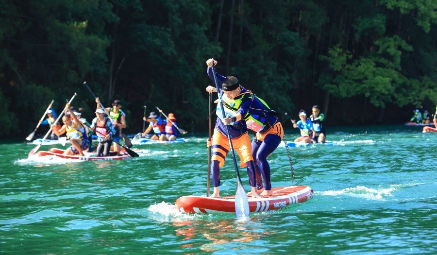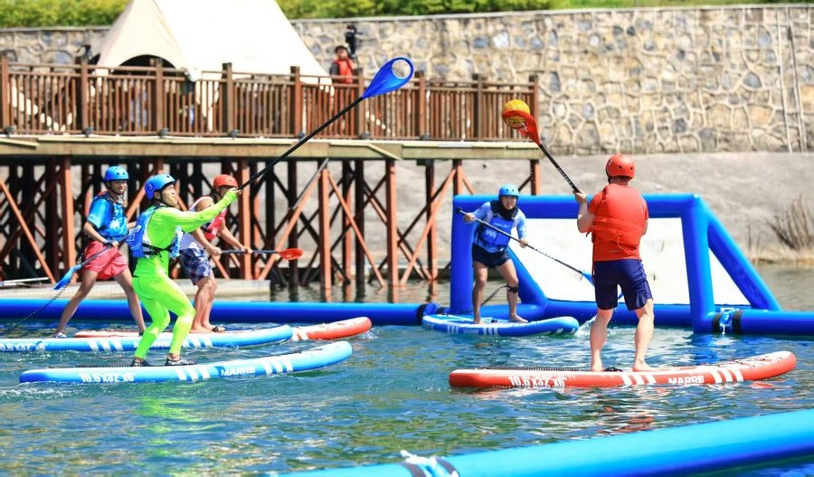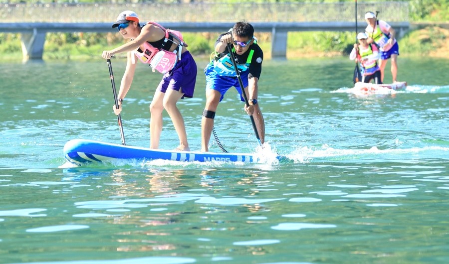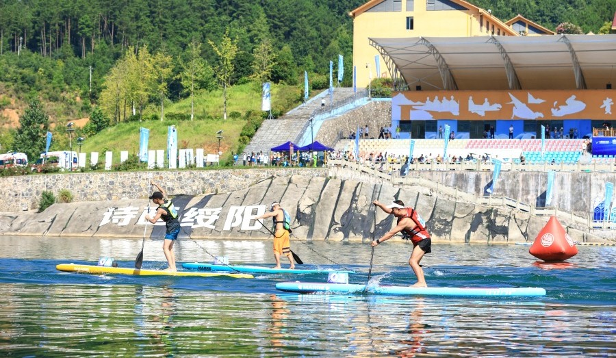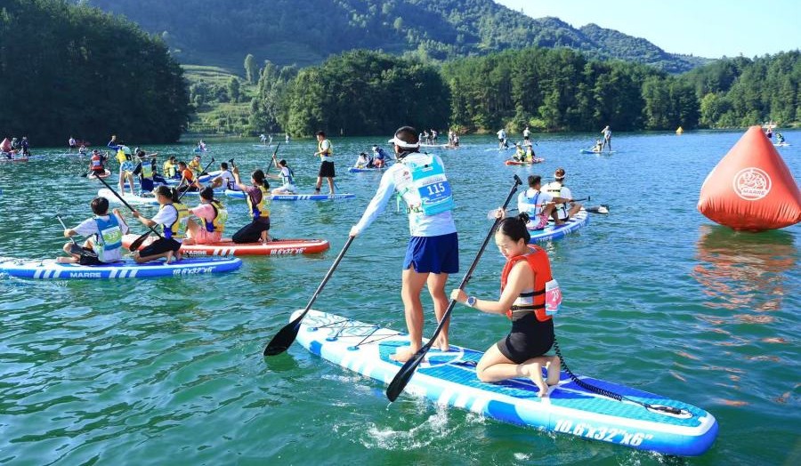 桨板虽是一项相对小众的水上运动项目,常在城市水域开展,但随着体育旅游的兴起,它的运动场边界正不断拓展,走进大山深处、村落的河湖,让爱好者开启全新旅程。