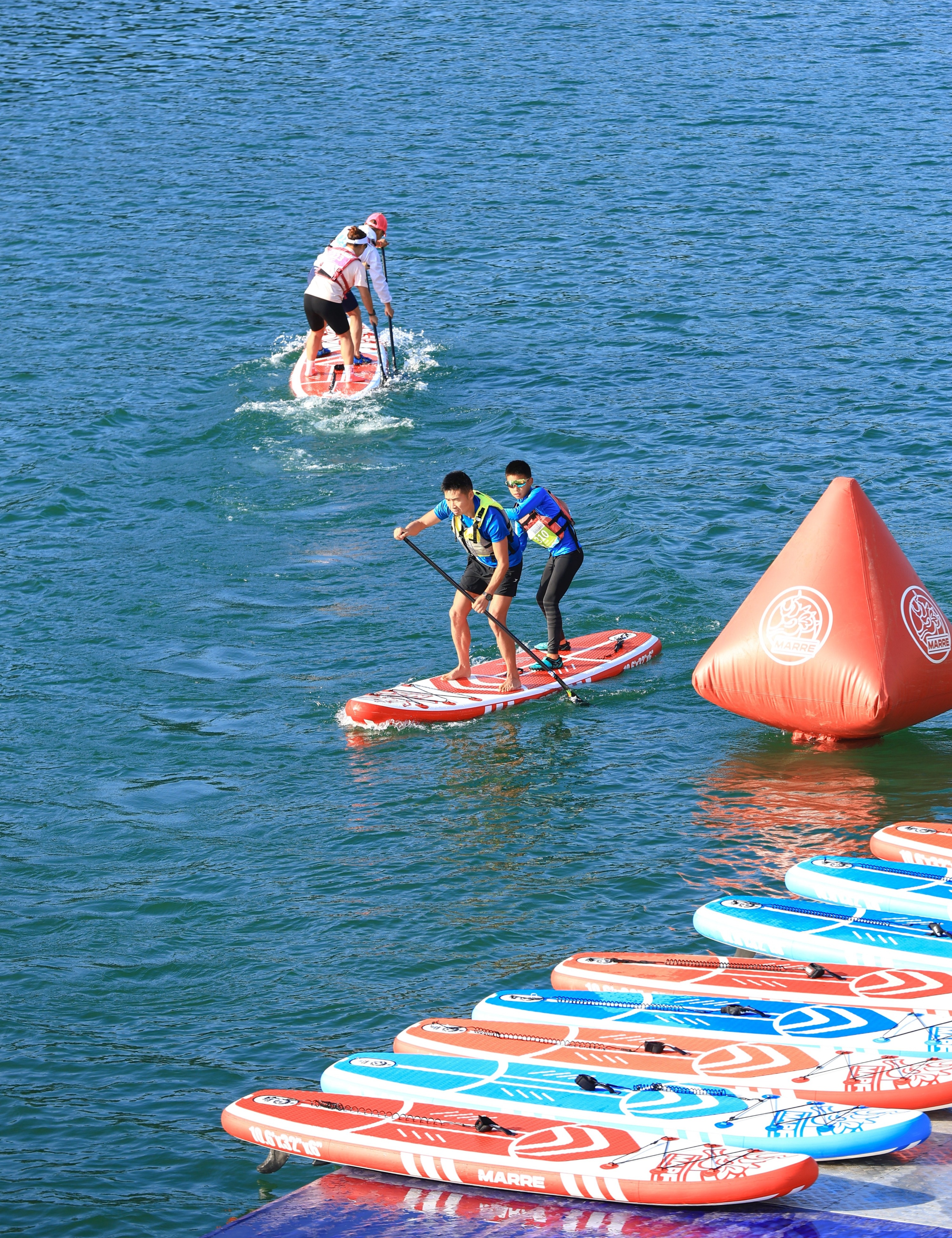 看,比赛现场,曾获亚洲桨板锦标赛冠军叶贵桐、徐浩婷等选手领航,脚踩长板、手摇划桨展现速度美学,国家级裁判护航,保障赛事精彩进行,一幅动人的体育画卷在卧龙湖展开。