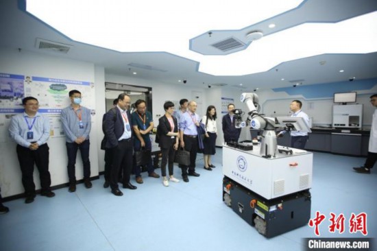 与会嘉宾参观中国科大江俊团队研制的机器化学家。 中国科大供图