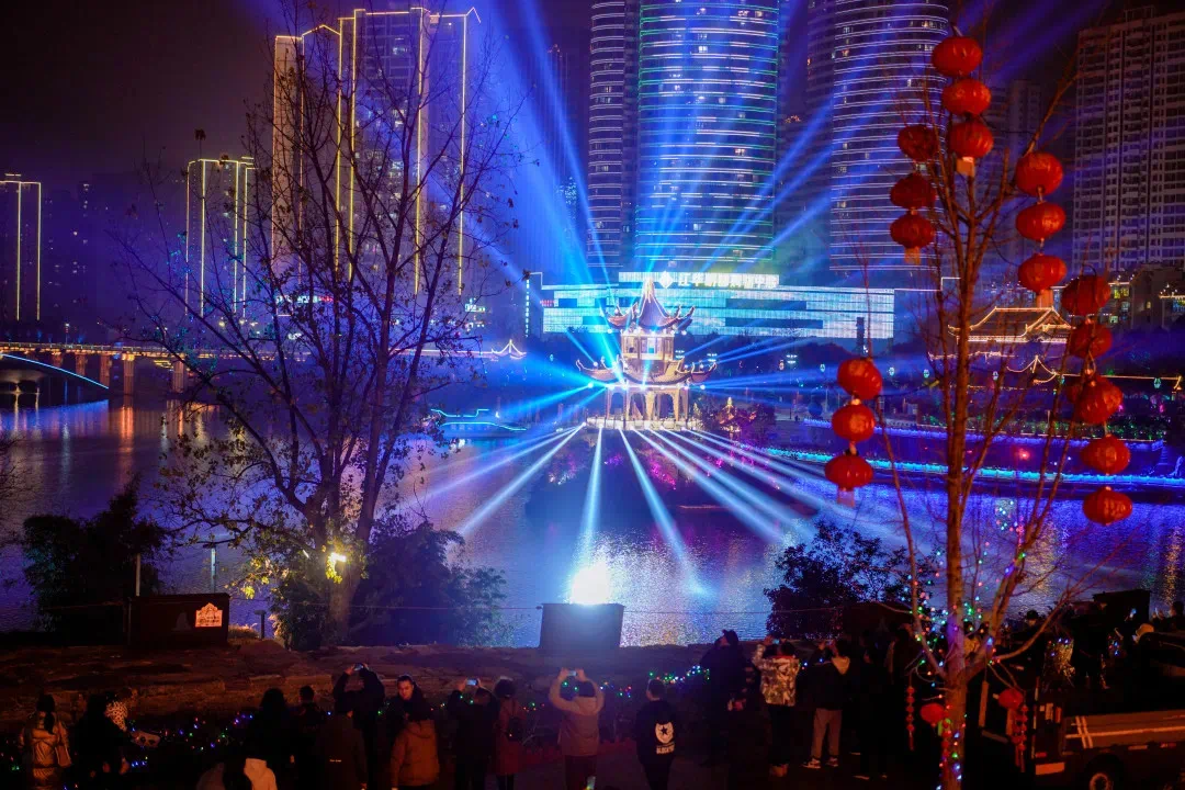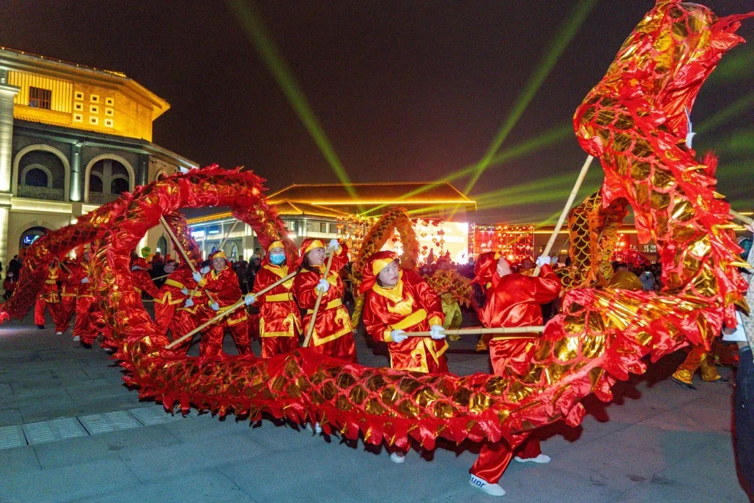 映像中南门:群艺展演、非遗巡游以及跨年电影、“火龙游江”、飞天凤凰、美食打卡等配套活动。