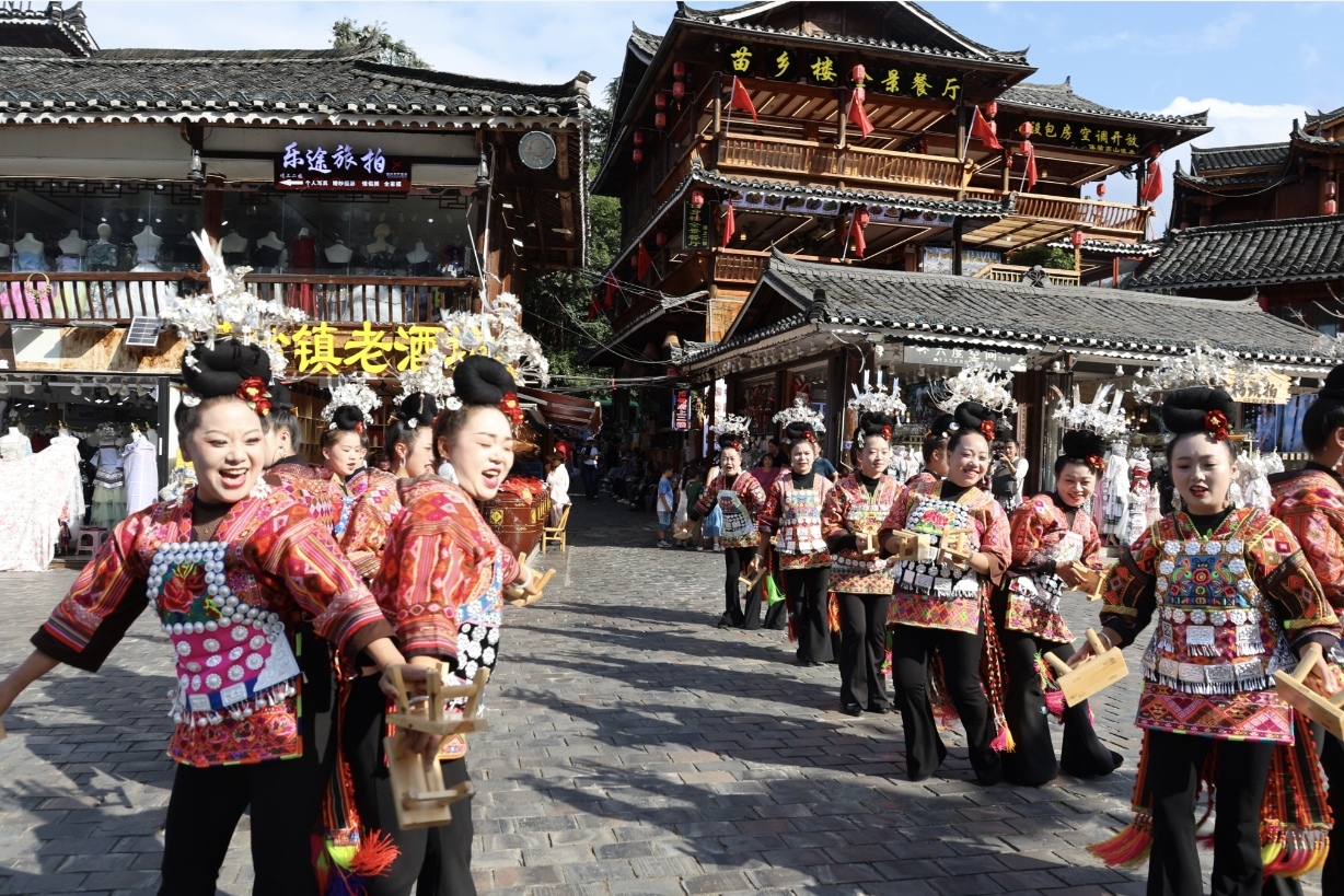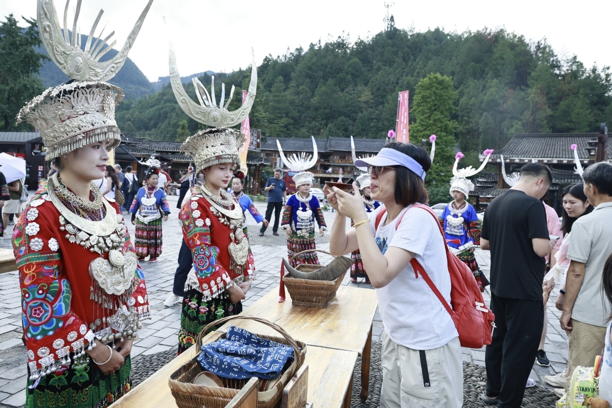 观美景、赏民俗、看歌舞、品美食……2025年国庆中秋假日期间,贵州黔东南雷山县西江千户苗寨以“游千户苗寨贺祖国华诞,赏《仰欧桑》度中秋良宵”为主题,推出系列沉浸式体验活动,广大游客乐享假日苗寨之旅,沉浸式感受苗寨的魅力。