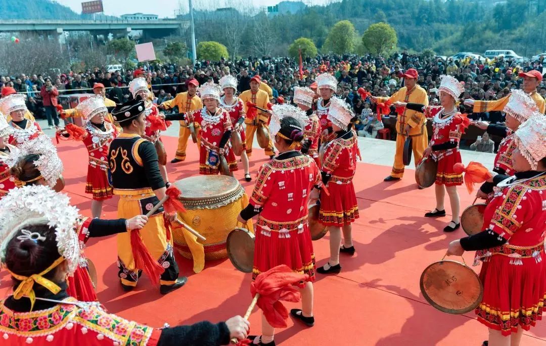 茶店街道,古老而淳朴的鼟锣被鼓手和锣手敲响,粗犷豪放的舞姿,神采飞扬的神情,赢得了群众的阵阵喝彩。