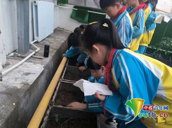 铜川市青年路小学学生种植中草药。北京中医药大学研支团供图