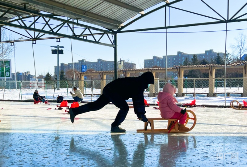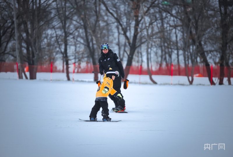 冰雪“遛娃”是体力活,男士成主力军(央广网记者 郭东隅 摄)