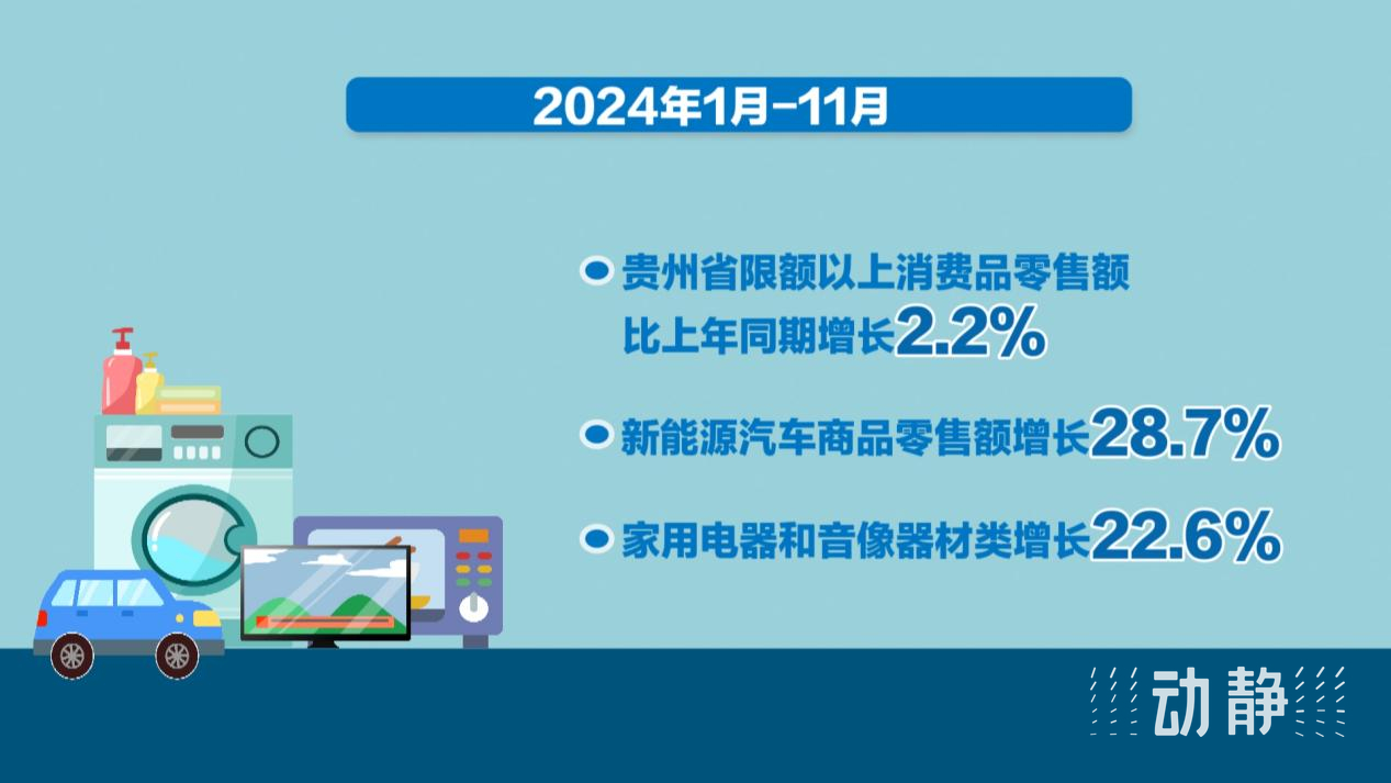 数据显示,1到11月,贵州省限额以上消费品零售额比上年同期增长2.2%,其中,新能源汽车商品零售额增长28.7%,家用电器和音像器材类增长22.6%,消费品“以旧换新”政策持续显效。