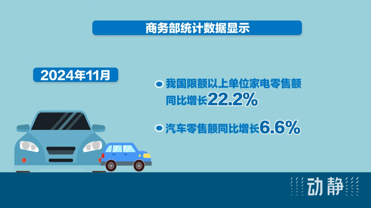 数据显示,11月份,我国限额以上单位家电零售额同比增长22.2%,汽车零售额同比增长6.6%,大宗消费增势较好。