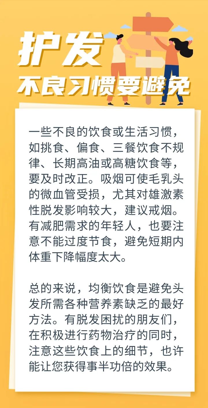 近年来,脱发问题越来越普遍且趋于年轻化,很多80后及90后都出现了“发量焦虑”。脱发可分为不同类型,常见的主要有雄激素性脱发、斑秃和休止期脱发。导致脱发的原因是多方面的,除了皮肤毛囊病变、遗传因素、激素紊乱、精神压力,不良的饮食和生活习惯也是重要原因。脱发严重的朋友们,千万别忽略了饮食与营养问题。