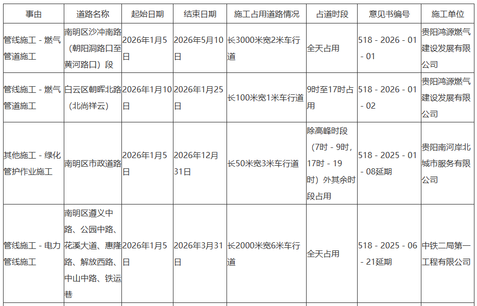 贵阳市南明区沙冲南路等近期临时占用道路施工提示