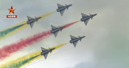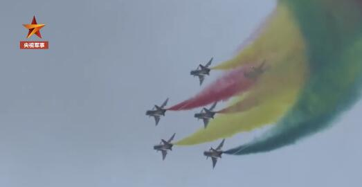 ▲在10月3日第13届中国航展最后一天上,空军八一飞行表演队再献精彩表演,6架歼-10战机在航展上空画出超大彩虹。