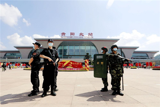 ▲国庆期间,贵阳北高铁站迎来客流高峰,为应对假期探亲、旅游出行需求旺盛的特点,贵阳铁路公安处贵阳北车站派出所加强值守应急, 24小时为贵州省内最大铁路客运“旱码头”保驾护航,确保随时快速处置各类突发事件,维护铁路运输平稳和旅客出行安全。