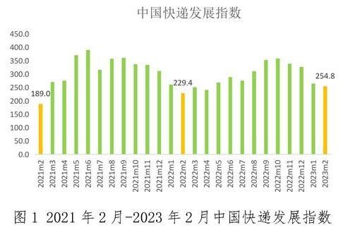 国家邮政局网站8日发布2023年2月中国快递发展指数报告。经测算,2023年2月中国快递发展指数为254.8,同比提升11.1%。