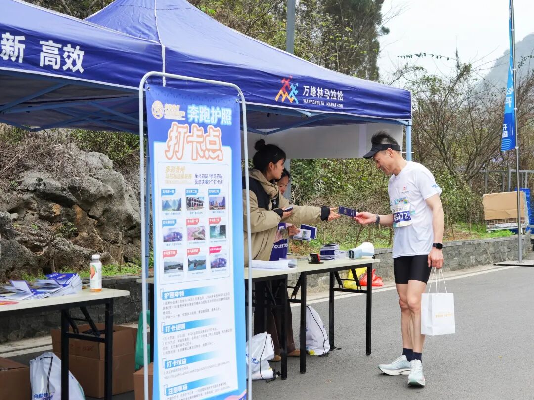 完赛后,不少选手来到多彩贵州奔跑护照打卡点,领取专属“奔跑护照”,加盖专属印章。跑者可在后续各站联赛中继续集章,解锁相应纪念权益,留下独特的奔跑记忆。