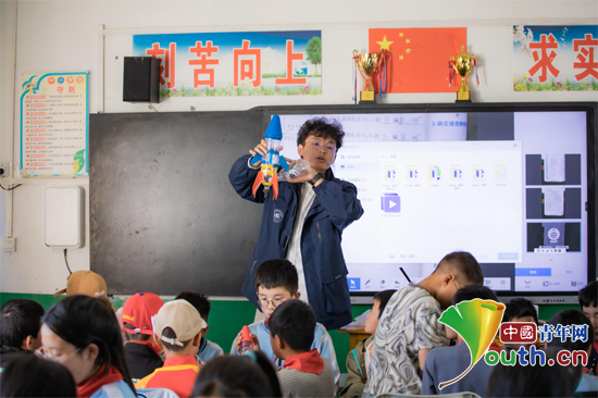 日前,北京航空航天大学研究生支教团宁夏泾源分队在泾源县新民中心小学开展“航空航天兴趣周”系列活动。