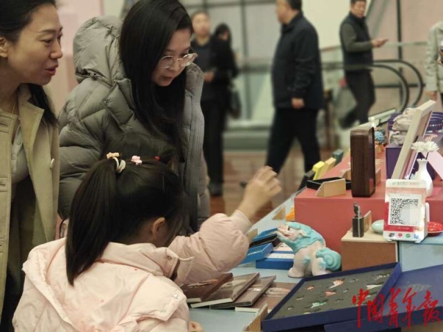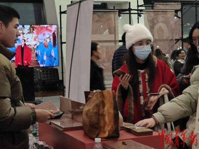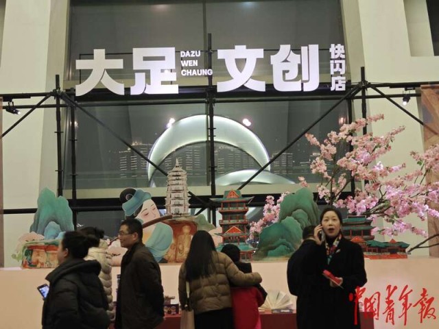 2月23日晚,重庆大剧院内,大足区文创快闪店。中青报·中青网记者 耿学清/摄