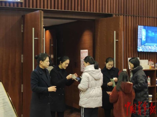 2月23日晚,重庆大剧院,舞剧《天下大足》演出即将开始,观众正在检票入场。中青报·中青网记者 耿学清/摄