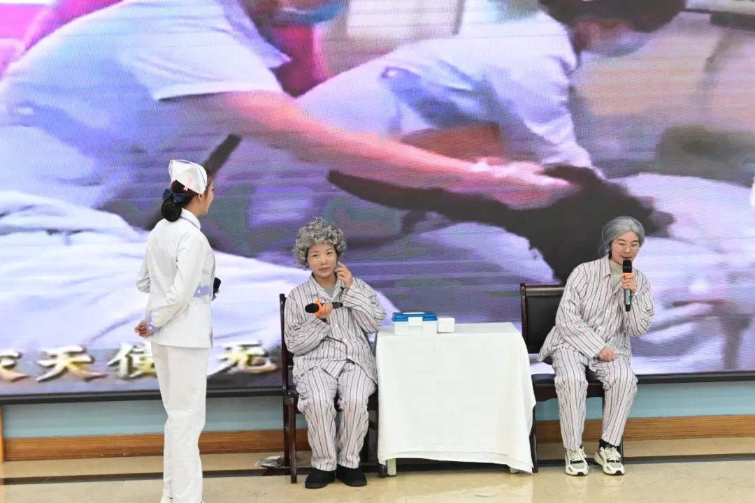 演出环节中,广大医务工作者以自编自导自演,以合唱、歌舞、配乐诗朗诵、情景剧等形式,生动反映医护工作场景、医患和谐、医风清正的精神风貌。演出共分为书写时代、求索发展,绽放青春、实现梦想,辞旧迎新、再创辉煌等三个篇章,舞蹈表演《春暖花开》拉开演出序幕,营造出喜庆热烈的节日氛围。一曲合唱《明天会更好》,引发了大家深切的情感共鸣,唱响平凡的医护人员用坚守诠释敬佑生命、救死扶伤的职业精神与崇高信念。来自临床科室编排的情景剧《做最好的我们》《急诊科的故事》《病房里的那些事》《舞动一夏》《一路生花》《解放西路的日子》《夸夸咱医院》配乐朗诵《如愿》等等节目,展现新时代医务工作者站牢临床一线的冲锋姿态,焕发出的新风正气。舞蹈《春韵暖人心》《春暖花开》《最亲的人》和双人唱《阿瓦人民唱新歌》等节目,反映出医务工作者能歌善舞、多才多艺的一面,朗诵节目《如愿》《一封家书》和脱口秀表演《拜年》激越高昂,再现医务工作者对中华优秀传统文化的礼赞。由团员青年出演的朗诵节目《青春》,喊出了不奋斗不青春、吾以青春献四医的豪迈誓言。整场演出活动彰显简约朴素之美,体现了医院文化的崭新气象。