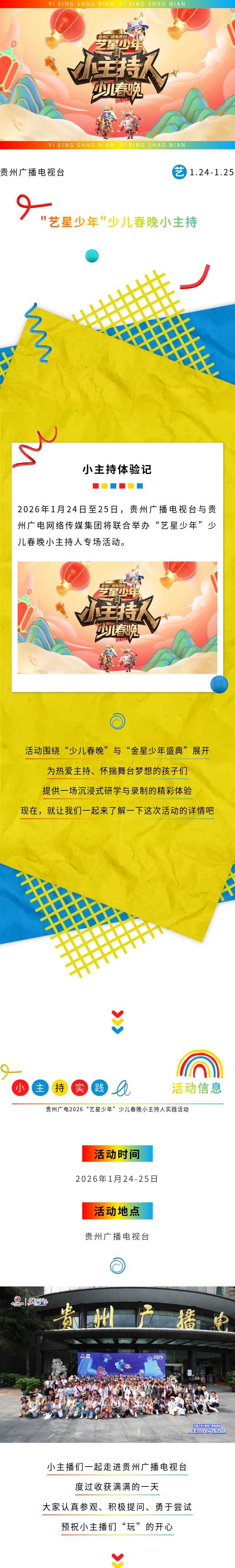 闪耀舞台,共迎新春!贵州广电2026“艺星少年”少儿春晚小主持人实践活动1.24——1.25活动预告!