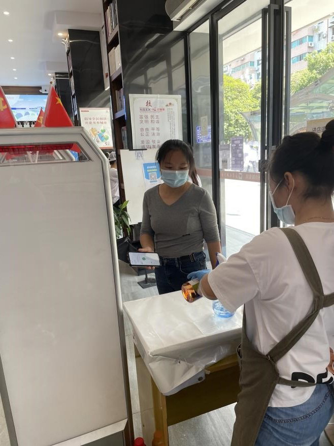 为给读者提供安全的阅读购书环境,黔东南州新华书店有限公司多措并举,加大店内公共区域的消毒频次,在进出口处放置引导顾客出示“双码”的指示牌、免洗消毒洗手液,以及特意为不擅长使用手机的老年人和小朋友们准备的登记表,要求读者进店佩戴口罩,出示健康码、行程码,经体温测量正常后方可进店。