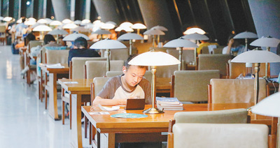 市民在山东省济南市图书馆“夜读空间”自习区学习。