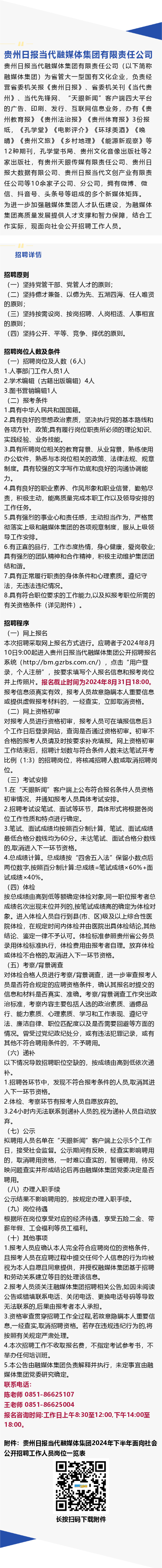 【国企】贵州日报当代融媒体集团3岗招聘!年薪10-12万元!五险二金!
