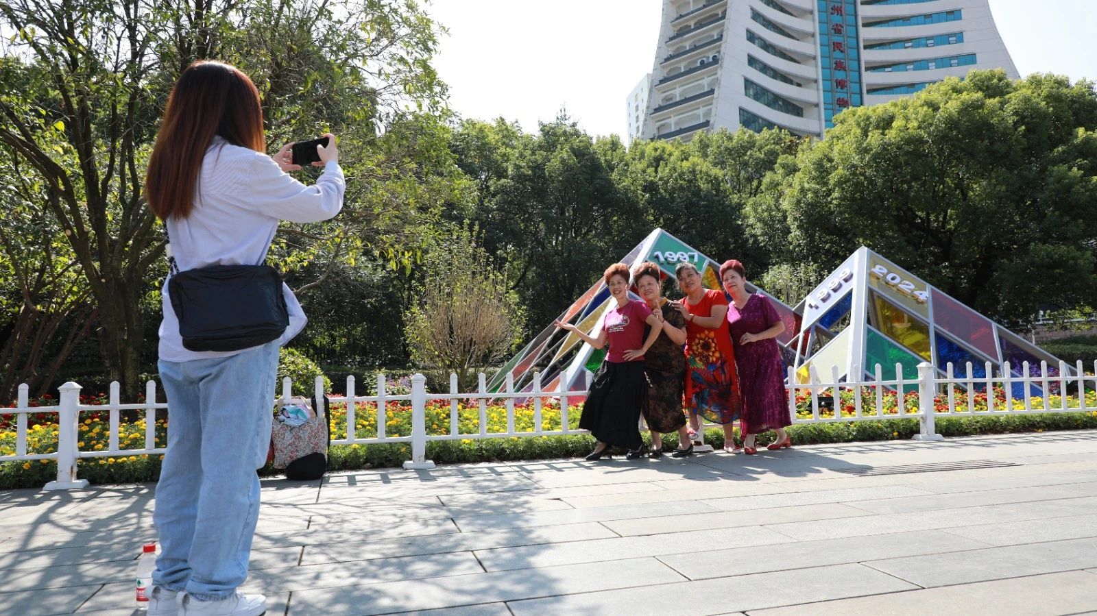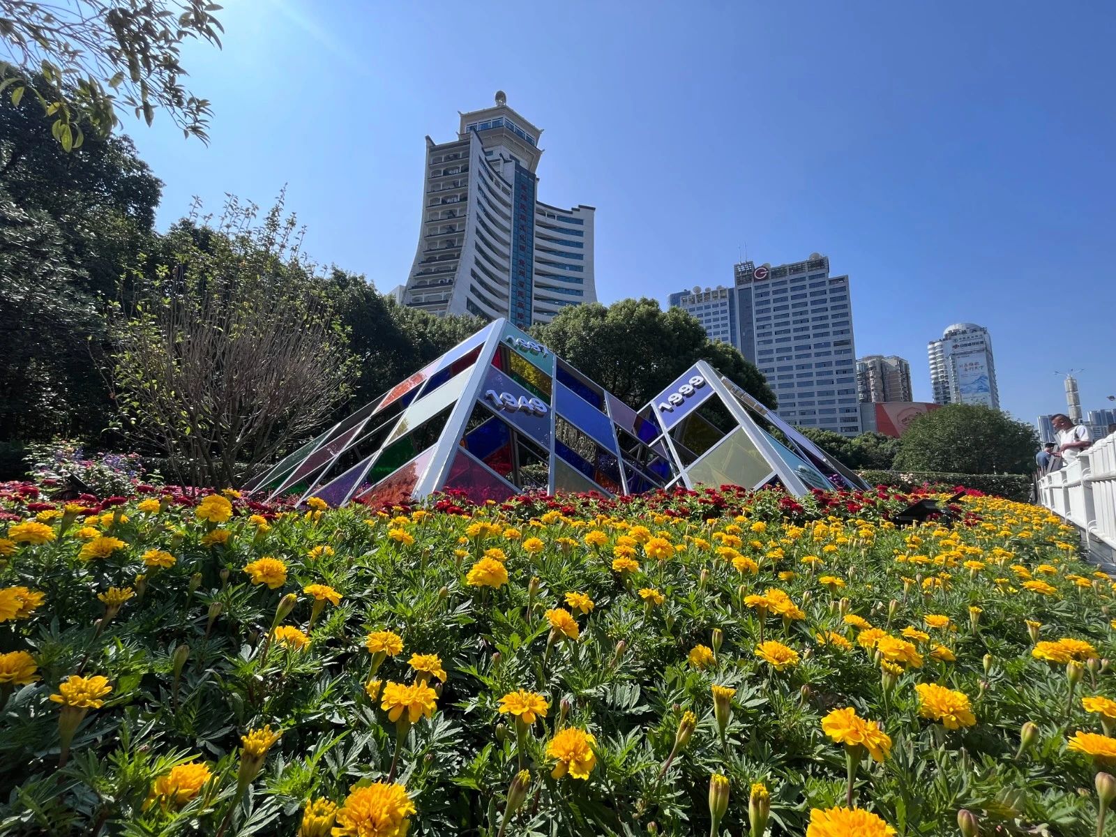 市民在“时光琉璃”景观前合影留念