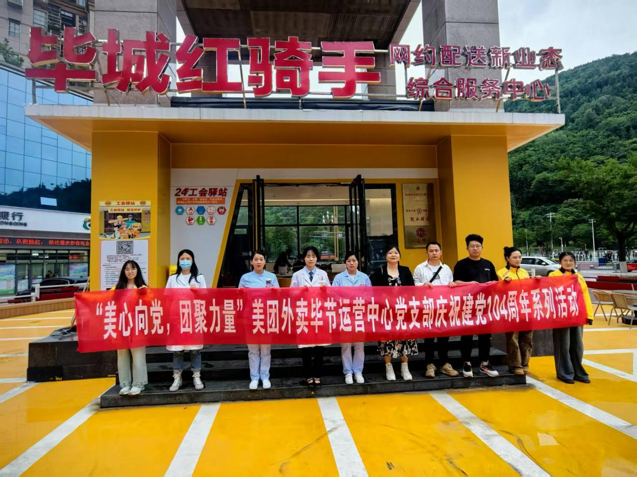 2025年7月,美团外卖毕节运营中心党支部在毕节七星关区开展庆祝建党104周年系列活动