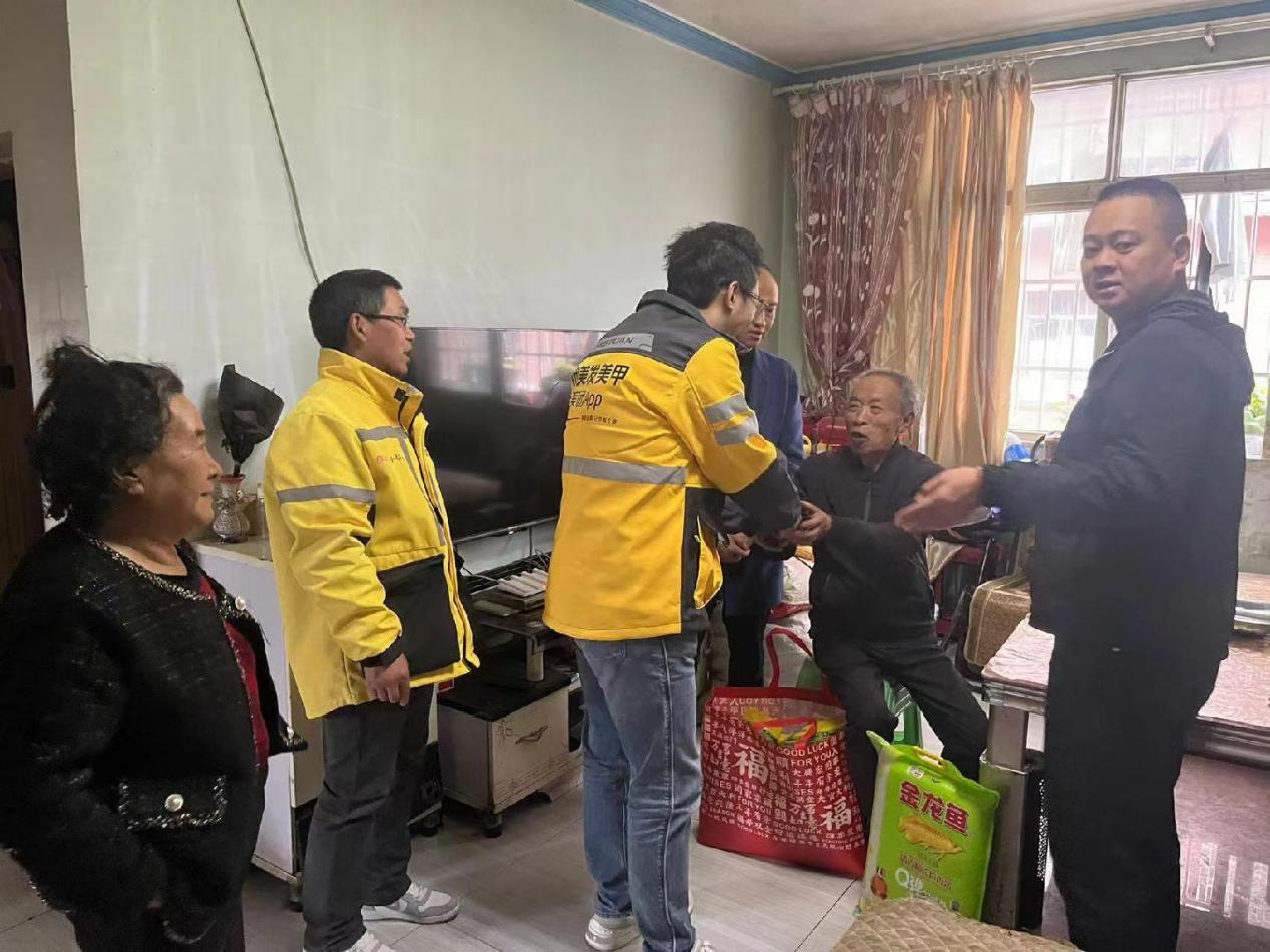 2025年1月,美团外卖毕节运营中心党支部到毕节市七星关区麻园街道杜鹃社区慰问困难群众