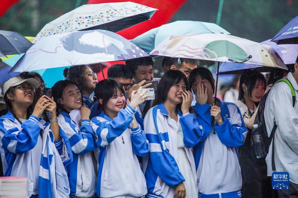 6月9日,贵阳市乌当中学高三学生在雨中参加毕业典礼。