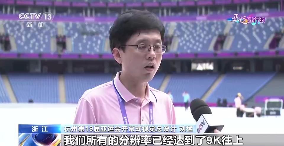 杭州亚运会开幕式视觉总设计刘猛:网幕宽度跨度是120多米,高度有20多米的一个空间范围之内,在现场看起来整个视觉效果,还是相当震撼的。