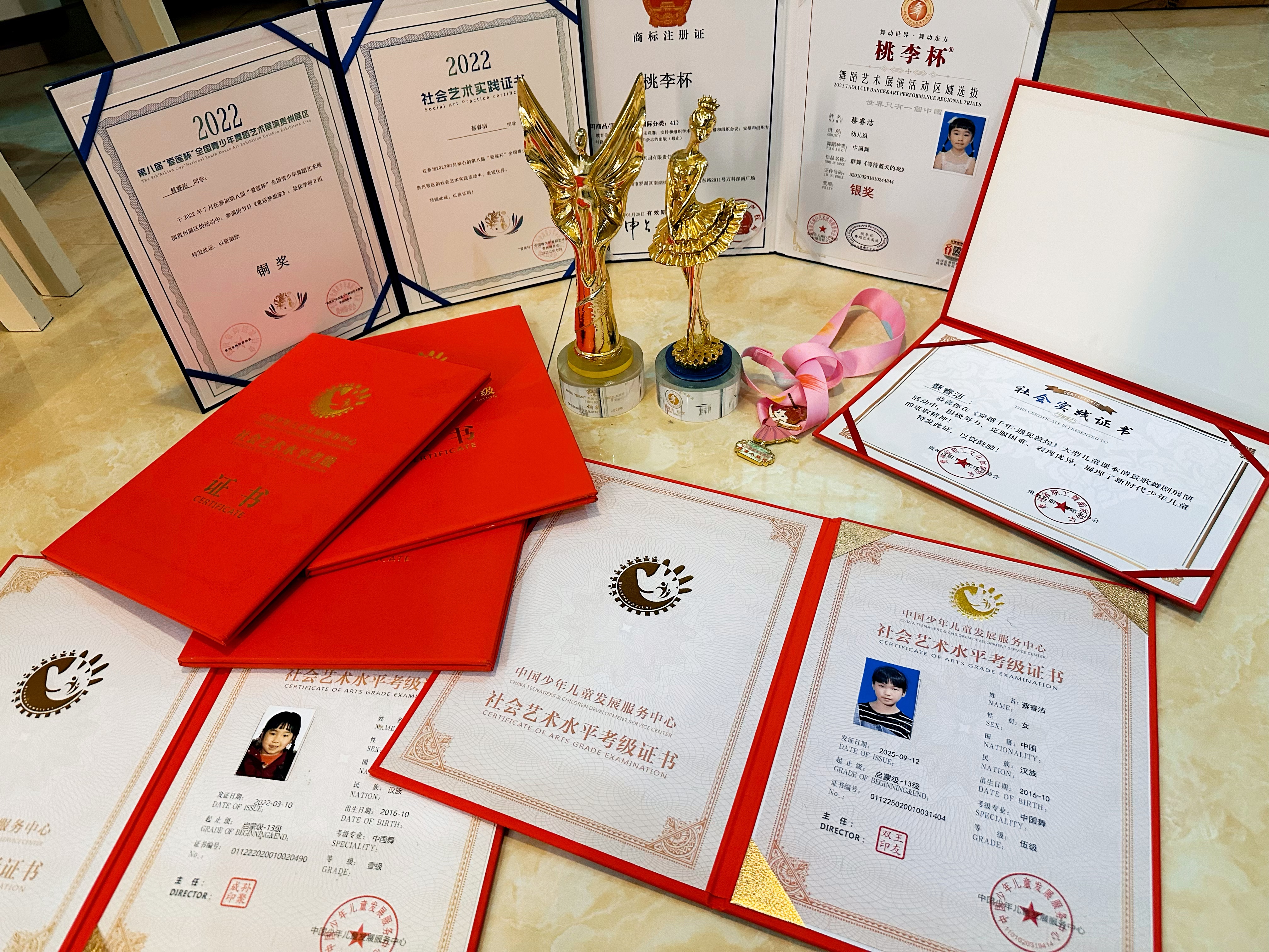 在学艺路上,我也收获了不少小成绩:2022年参加第八届"爱莲杯"全国青少年舞蹈艺术展贵州展区,凭借《童话梦想家》获得了铜奖;2024年参加“桃李杯”,凭借《等待蓝天的我》获得了银奖等等荣誉,每次表演听到台下的掌声,都让我更坚定了追求热爱的决心,老师总说我是个“动静皆宜”的孩子,安静时能沉浸在书的世界里,活跃时能在舞台上尽情绽放。